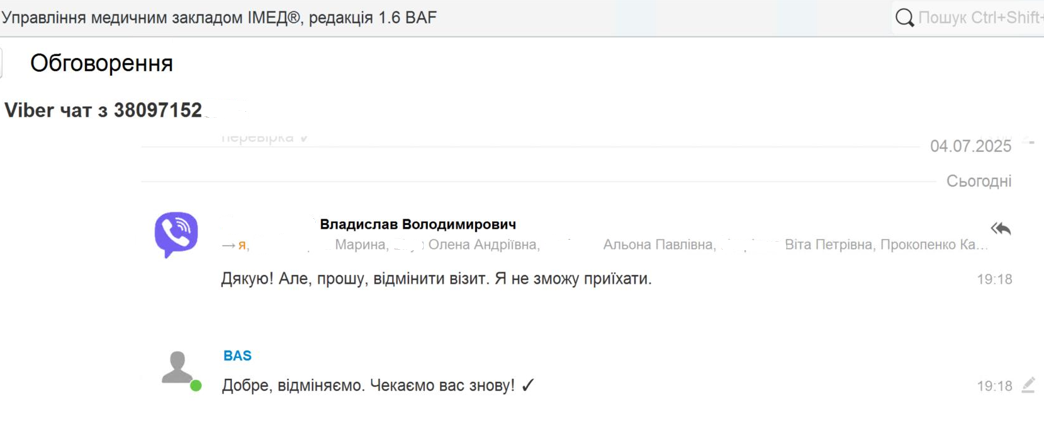 Коммуникация с клиентом происходит непосредственно в программе BAS Малий бізнес. Обращение клиента направляется на ответственных менеджеров.